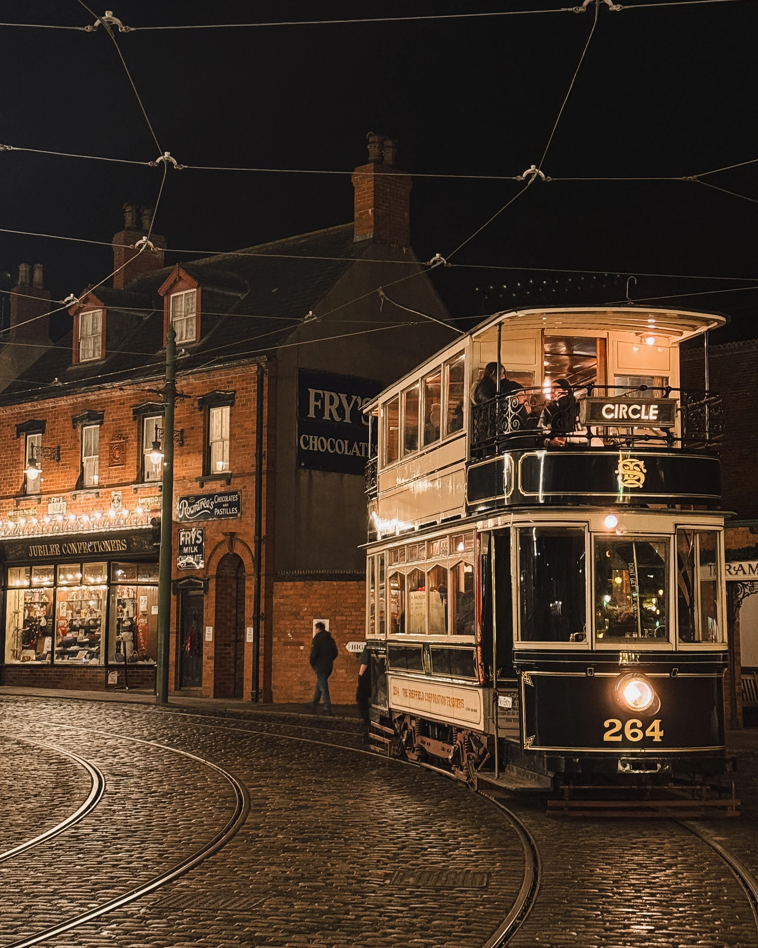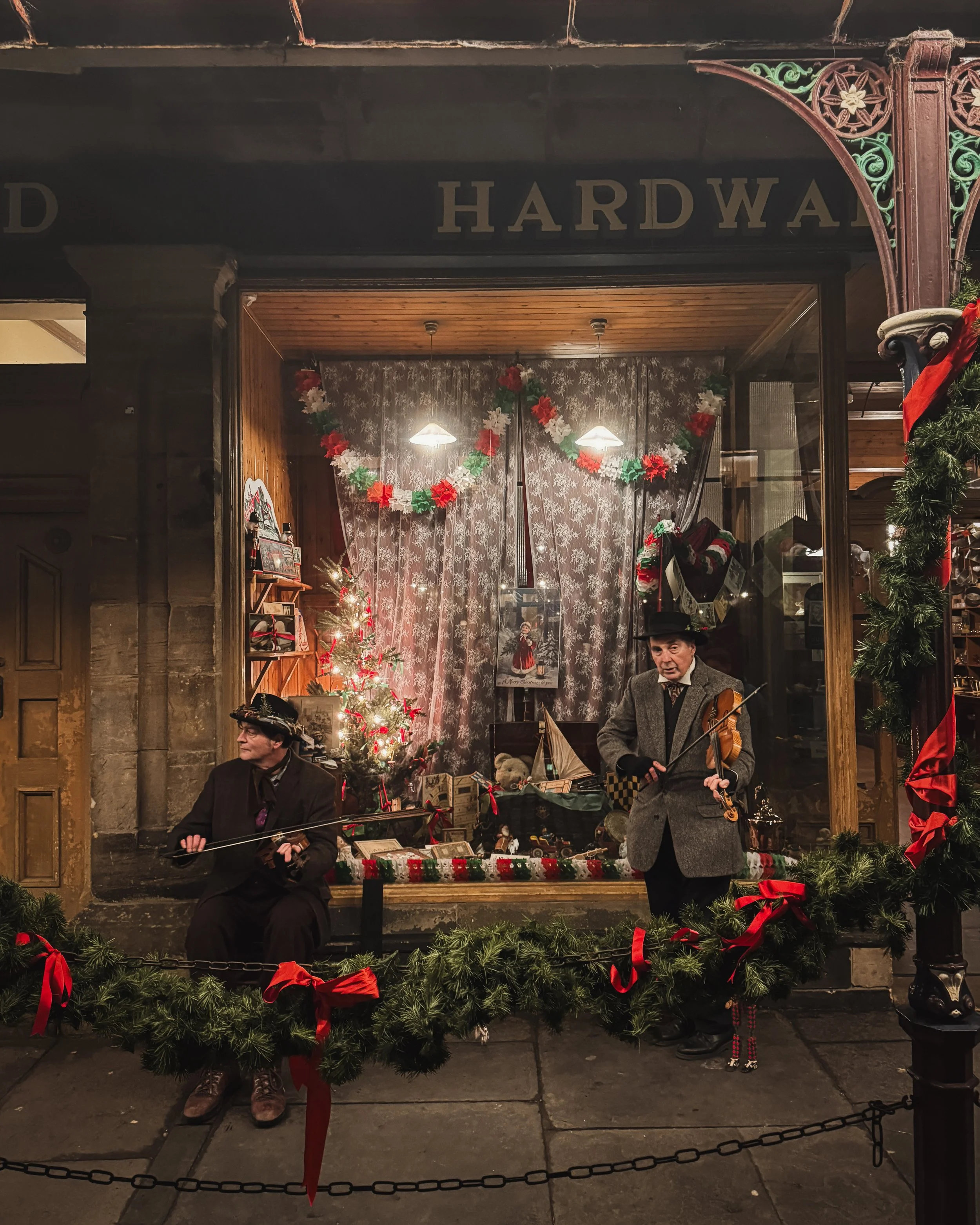 As dusk settles, the museum glows. Lamps are lit, fires crackle, and music floats through the cold air. We wandered from the pit village to the 1950s houses, then through the bustling 1900s town, and everywhere we went there was sound. Brass bands played with rosy cheeks and steaming breath, carol singers in full Victorian dress filled the streets, and the whole place felt less like a museum and more like time itself had decided to host a Christmas party.