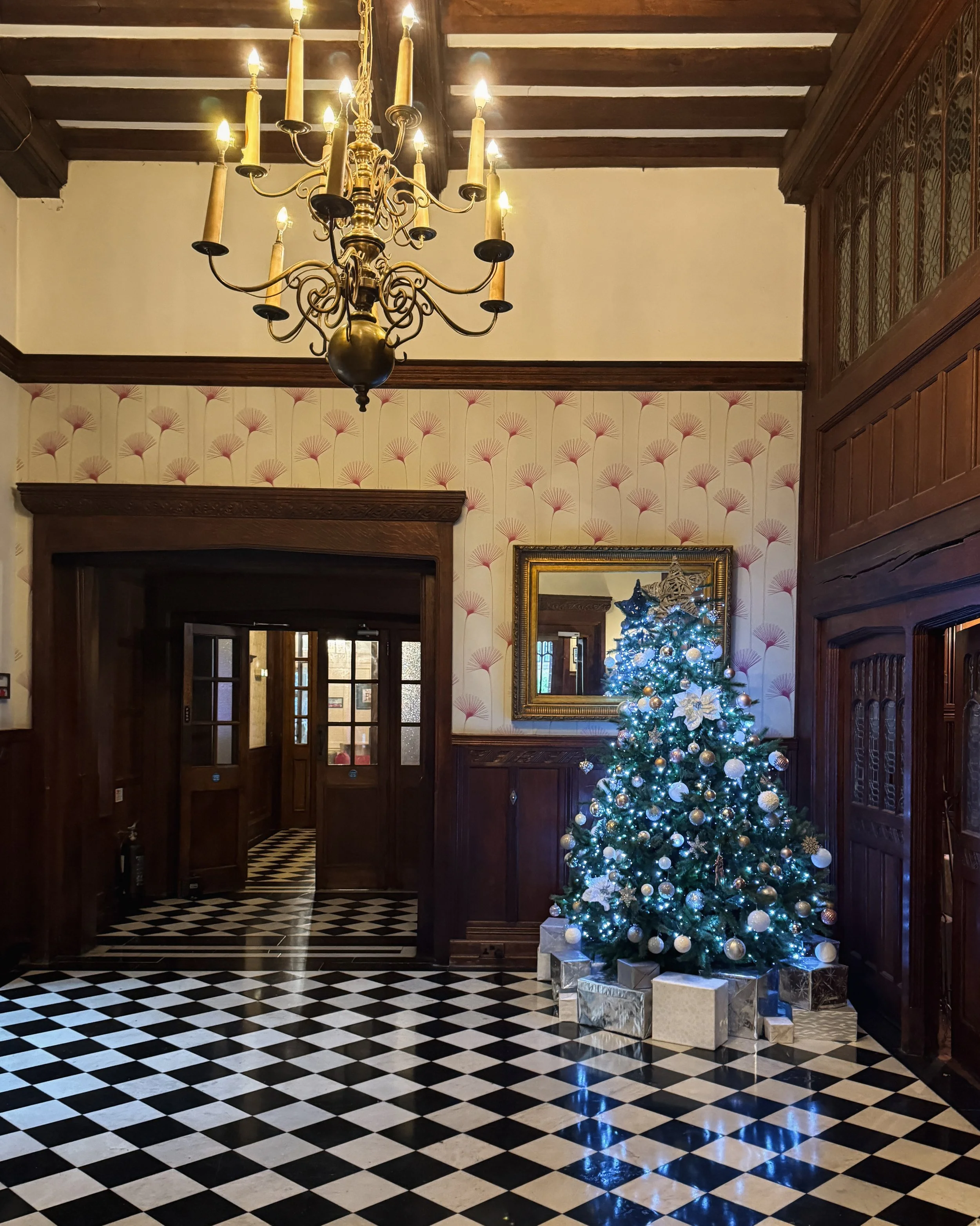 We arrived in the late afternoon and took tea in the drawing room. Paintings of monarchs like Edward III and Elizabeth I hung over us and the roaring fire kept us cosy. The grandfather clock struck upon the hour and we headed to our rooms to prepare ourselves for dinner.