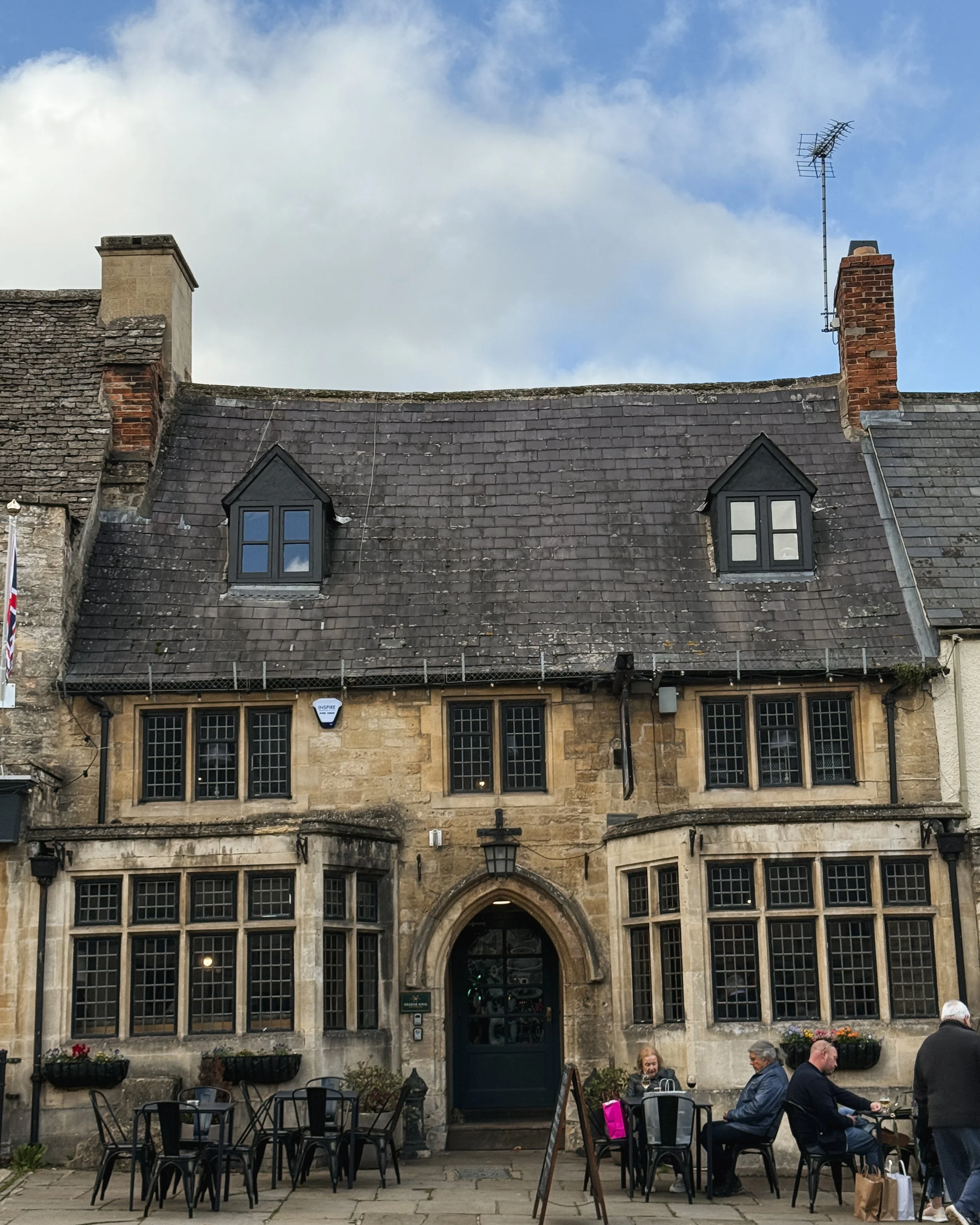 With coffees in hand, we made our way toward Burford High Street, one of the most postcard-perfect streets in the Cotswolds. Often referred to as the “Gateway to the Cotswolds,” the town carries an irresistible blend of timeless architecture and modern charm.